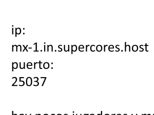 - respuestas y 1 visitas Último bump hace: 3 horas Últimas Respuestas:Sé el primero en responder. Entrar al hilocomenzó esta discución hace 3 horas #0mentanse pls (no deja poner la ip xdd) hay pocos jugadores y muy inactivos |