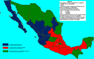 En esta primera edicion, y tomando en cuenta que este es un chan lento, jugaremos con solo 3 personas y en un mapa pequeño, que consiste en Mexico y sus 32 entidades federativas. Si mas adelante hay interes, podremos jugar en un mapa mas grande con mayor cantidad de jugadores. Pero primero veamos como nos va con este.