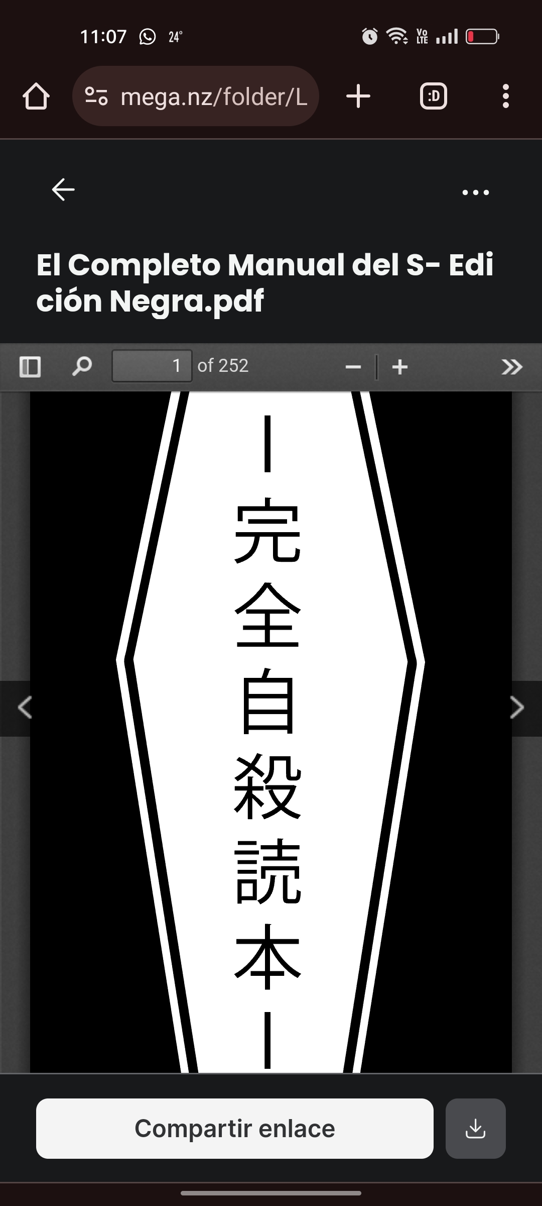 Realmente me sorprende como lo que antes era un misterio ahora solo es otro semana mas en internet. Hace 10 años cuando buscaba información sobre el manual del suicidio @5,319 (Daxhiwe) habia poca información, incluso habia personas que afirmaban que era un mito, despues de estar de un lado a otro en internet logre conseguir una copia en perfecto japones toda pixeleado y ahora resulta que alguien se tomo el tiempo de traducirlo al español como material suplementario para los fans de un mono chino emo. > Ya que estoy aqui
