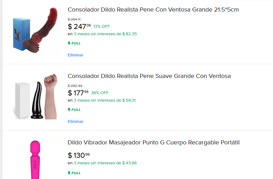 > una vez recaudada la feria hiba a comprar articulos previamente seleccionados: dildos, condones y lubricantes anales y vaginales. el presupuesto era de 1500, que me deja 9750. este era el presupuesto para putas