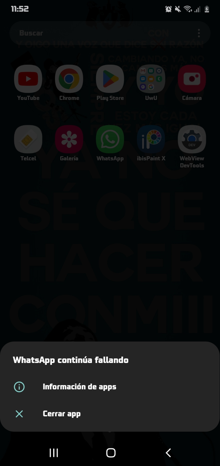 Últimamente tuve problemas con mi WhatsApp, ya que lo desistele para tener espacio y volverlo a intentar. Pero una vez mi WhatsApp me empezó a fallar y no me dejaba entrar y me sacaba de la app (por el momento si me deja entrar pero si deslizo para abajo me saca) y ya intente de todo y nada me funciona, y realmente me frustra ya que lo ocupo para la escuela