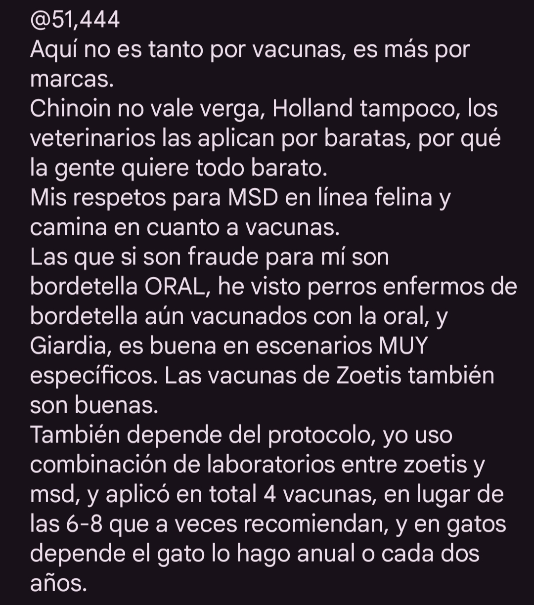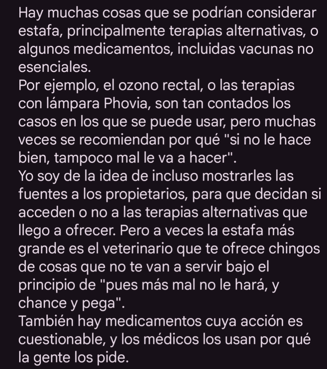 Atiendo sobre todo perros y gatos, estoy oxidado en las demás áreas y sobre todo en la zootecnia.