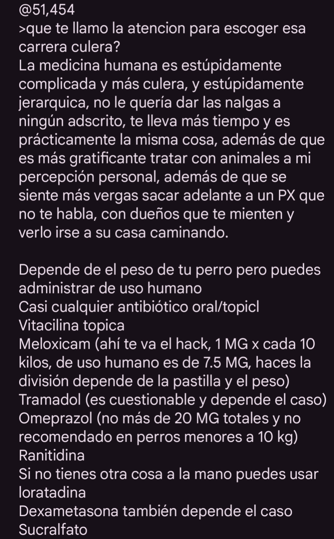que medicamentos humanos le puedes administrar a animales que te salen mas baratos, me caga estar comprando esos medicamentos para mascotas a sobre precio solo porque son "especiales"para animales.