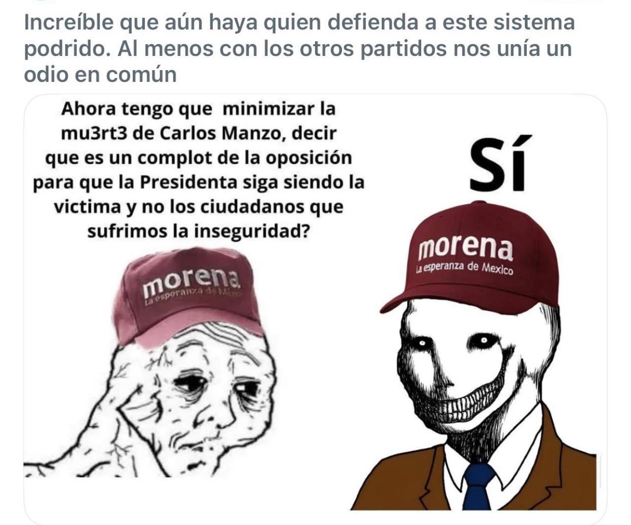 no te das cuenta que ya todo el mundo esta hasta la madre de la momia pendeja que tenemos de presidente, parece que ya se les olvido que culiacan lleva como dos años conquistado por los carteles y que hace poco se descubrio que la marina tenia un cartel de huachicol y hasta amlo sabia y no hizo nada porque obviamente se mochaban, y muy probablemente fue su mismo partido que mando a matar a manzo porque sabia que se las iba a poner dificil en el proximo sexenio