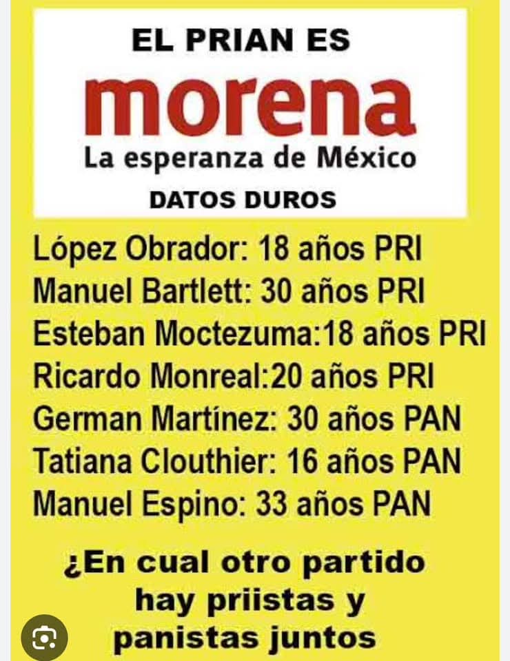 Eso es lo que te quiere hacer creer morena para que te quedes con ellos, como en un sindrome de estocolmo, la verdad es que antes de Peña se podia decir que no existia oposición de izquierda, (siempre se pendejeaba a amlo con todas las veces que perdio las elecciones), no fue hasta que paso lo de los 43 que obrador lo utilizo como propaganda para ganar las elecciones, ahora la derecha hace propaganda con Manzo (la diferencia es que la primera solo fue un caso de personas que estaban en el lugar y momento equivocado y lo segundo fue un jodido magnicidio)