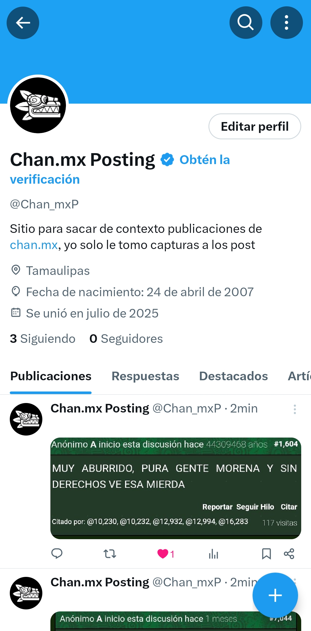 Anónimo No.7260 [Responder] Hice una cuenta de Chan.mx posting /general/